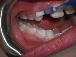 A study by Seppa looked at the difference in remineralization between a single application and multiple applications of two concentrations of fluoride varnish (1.1% vs. 2.3%; one treatment vs. 3 treatments within 7 days).5 The results indicated that applications of fluoride varnish regardless of concentration prevented demineralization, however the enamel treated three times with 2.3% varnish showed the greatest acid resistance. This data suggests that multiple applications of 2.3% fluoride varnish for high-extreme caries risk patients may be more effective than a single application (extreme risk = high risk + dry mouth or special needs).6