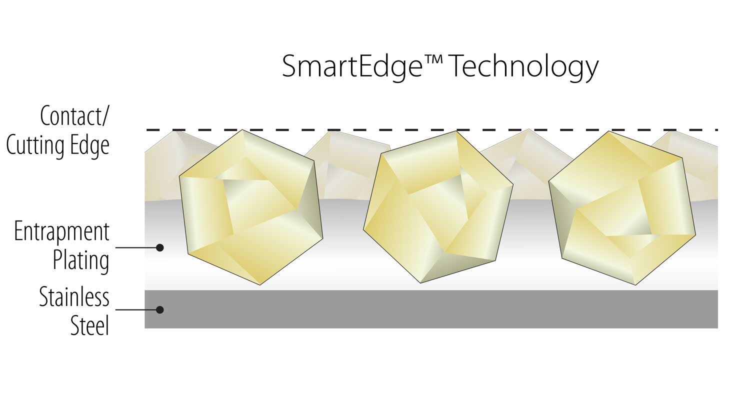 SmartEdge™ Technology – Intentionally positioned, uniformly shaped engineered diamond crystals maximize diamond-to-tooth contact
