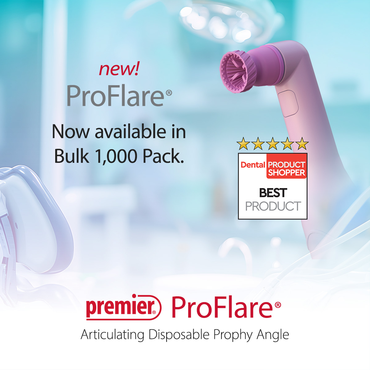 As ProFlare®’s disposable prophy angle continues to gain strong momentum among dental professionals, Premier is responding by offering a new 1,000-angle bulk pack to help meet increasing customer demand.